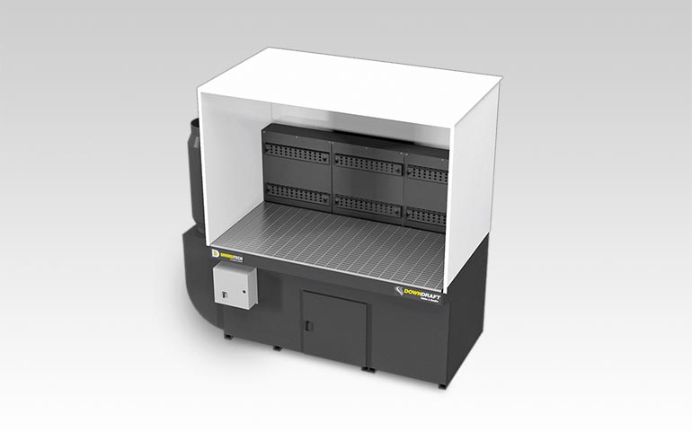 Equipped with a high enclosure that includes a ceiling and side and back panels, the booth prevents contaminants from escaping the backdraft hood and improves the performance of your table. Whether you weld, grind, debur, cut, sand, finish, solder, paint or mix, the DD 3′ X 6′ Downdraft Booth provides the perfect, flexible, all-in-one solution.