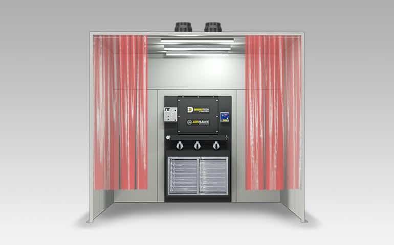 The Filterhawk Environmental Booth Module features an innovative design that effectively filters dry dust, smoke and other airborne contaminates from your environmental booth.