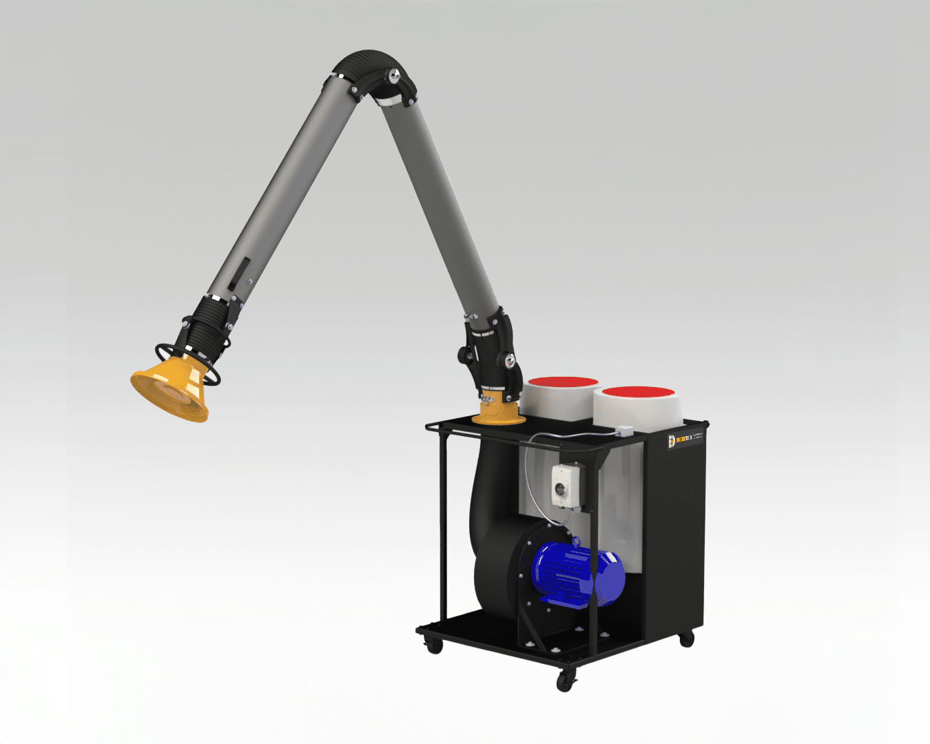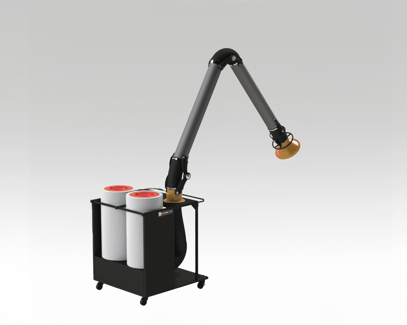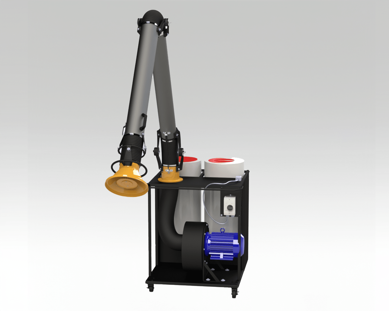 Dual-arm, professional grade, self-cleaning, mobile fume extractor that performs in heavy-duty applications.